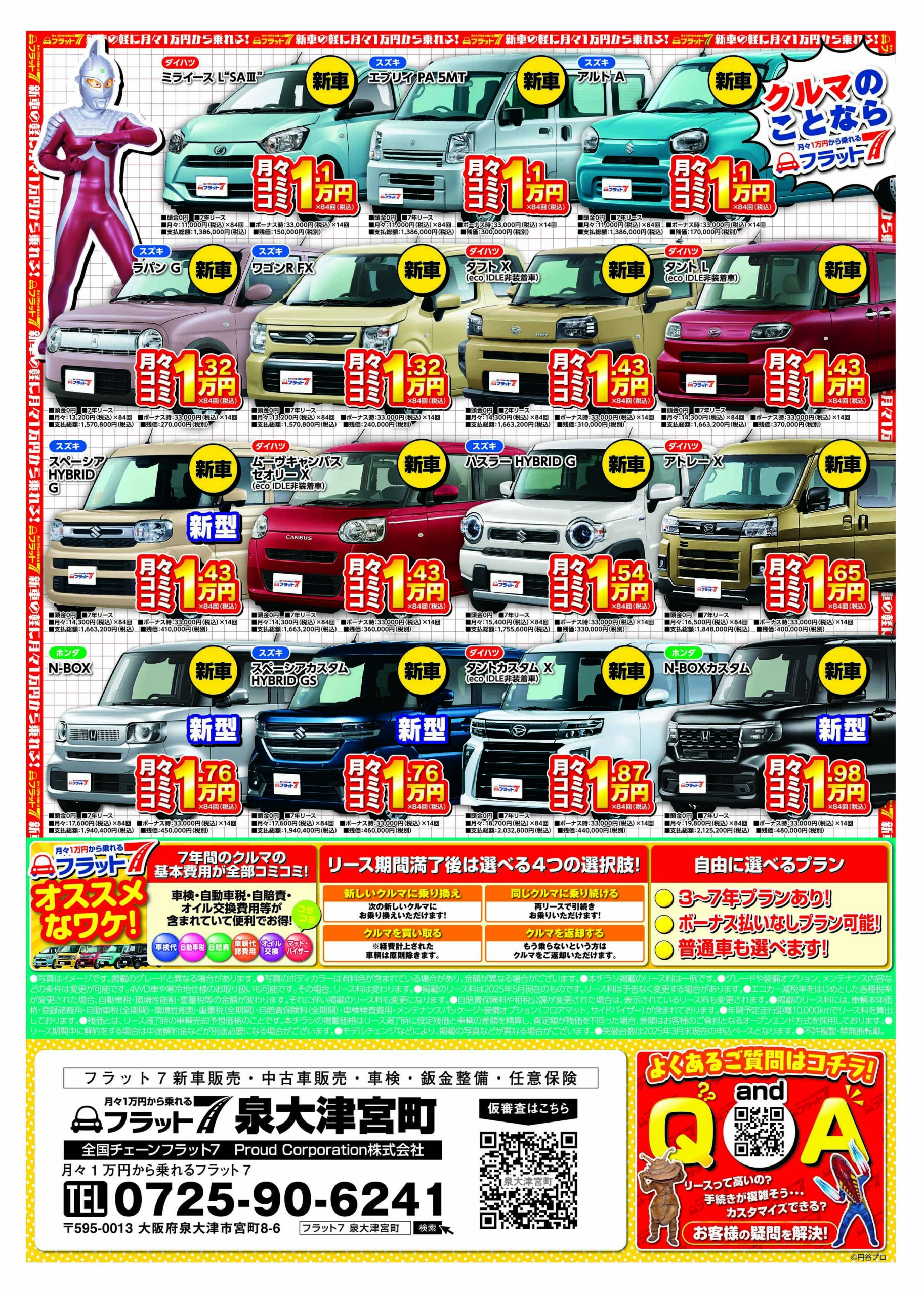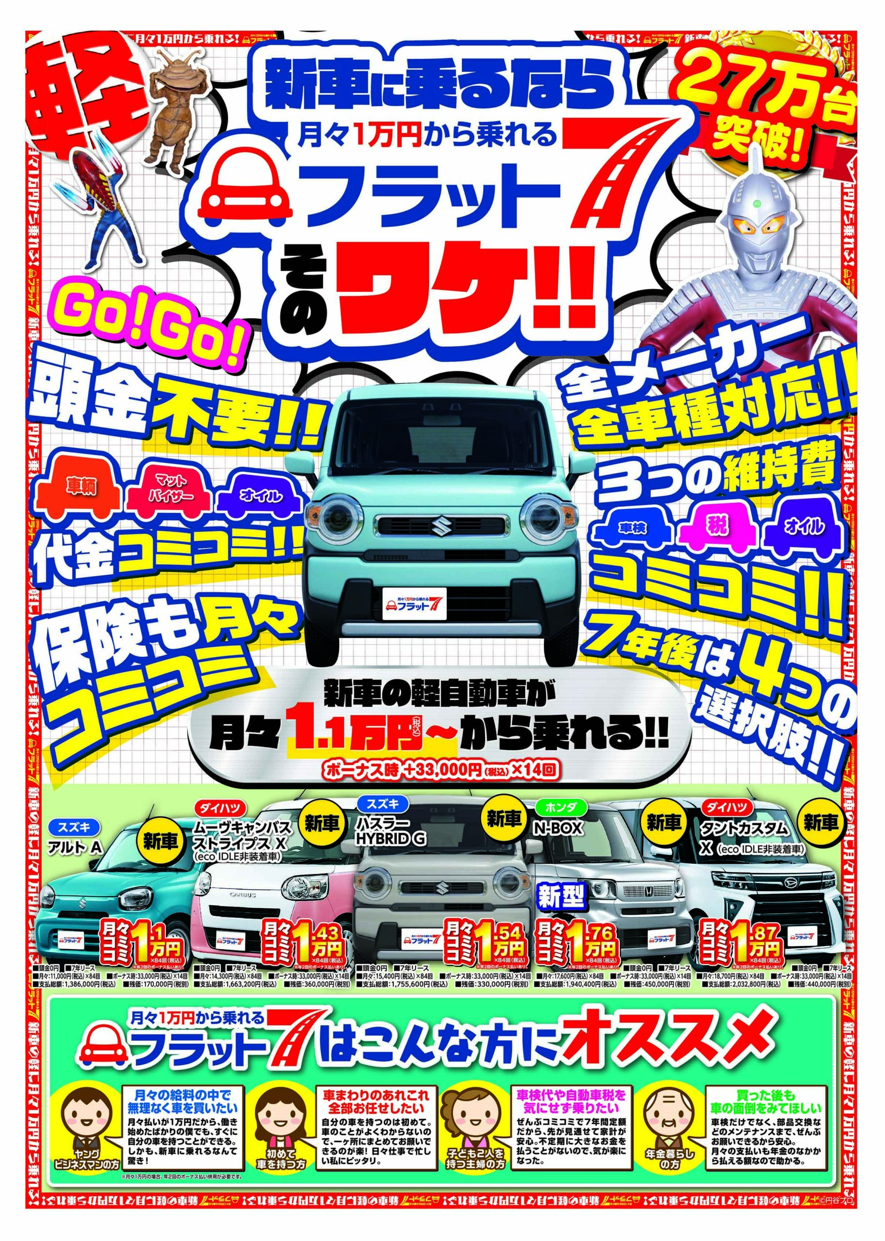 そのため実際の月々は割高にはなりません。設定残価はリースアップ時の売却予定価格ですので、フラット7では、人気車種に絞って高い残価を設定しました。